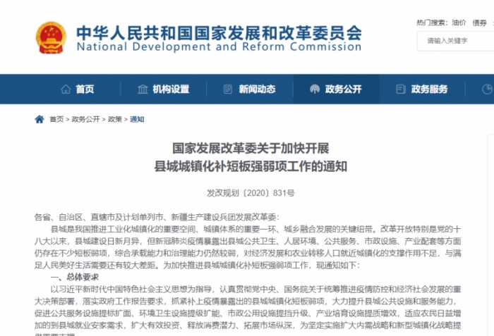 6月3日,國家發(fā)展改革委下發(fā)《關(guān)于加快開展縣城城鎮(zhèn)化補短板強(qiáng)弱項工作的通知》,強(qiáng)調(diào),開展縣城城鎮(zhèn)化補短板強(qiáng)弱項工作,要聚力推進(jìn)17項建設(shè)任務(wù)。圍繞環(huán)境衛(wèi)生設(shè)施提級擴(kuò)能,完善垃圾無害化資源化處理設(shè)施、污水集中處理設(shè)施和縣城公共廁所;圍繞市政公用設(shè)施提擋升級,推進(jìn)市政交通設(shè)施、市政管網(wǎng)設(shè)施、配送投遞設(shè)施、老舊小區(qū)更新改造和縣城智慧化改造。