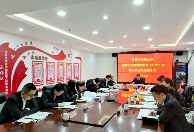2月7日,陜建十三建公司召開黨委中心組理論學習(擴大)會暨以案促改專題學習會議。公司領導班子成員、各部室負責人等參加會議。