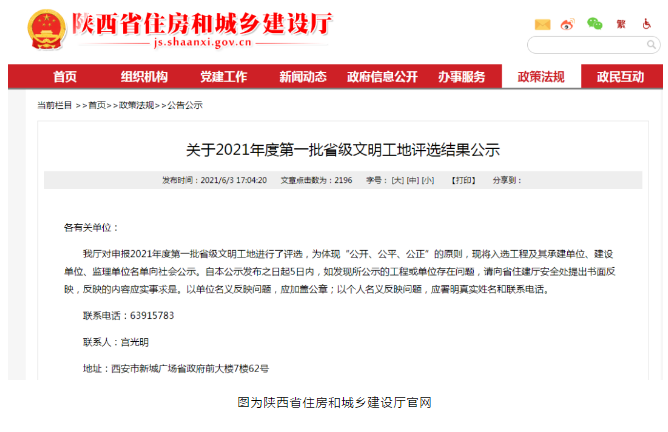 陜西省住房和城鄉(xiāng)建設廳公布了