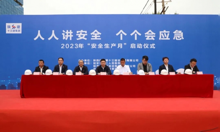 6月2日,陜建十三建集團在第二人民醫(yī)院改擴建項目項目部舉行2023年“生產(chǎn)安全月”啟動儀式。延安市第二人民醫(yī)院院長武劍峰、延安城投基礎(chǔ)設(shè)施建設(shè)有限公司副總經(jīng)理習(xí)智、集團總工程師王弘起、副總經(jīng)理楊永宏等出席啟動儀式。
