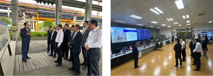 會前,韓軍鋒一行參觀了巨化集團電石工業(yè)遺存、氟制冷劑事業(yè)部智能控制室,了解了巨化集團產(chǎn)業(yè)發(fā)展、科技創(chuàng)新、數(shù)智變革等情況。